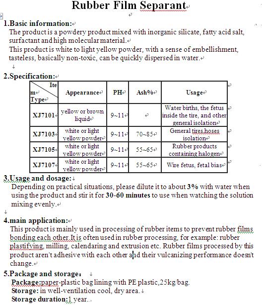 Location:Home > Product > Processing aids > Rubber Film Separant