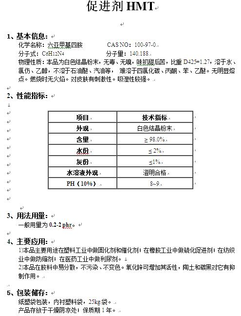 當前位置:首頁 > 產品展示 > 硫化劑\促進劑 > 促進劑HMT