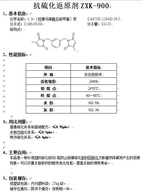 當前位置:首頁 > 產品展示 > 硫化劑\促進劑 > 抗硫化還原劑(ZXK-900)